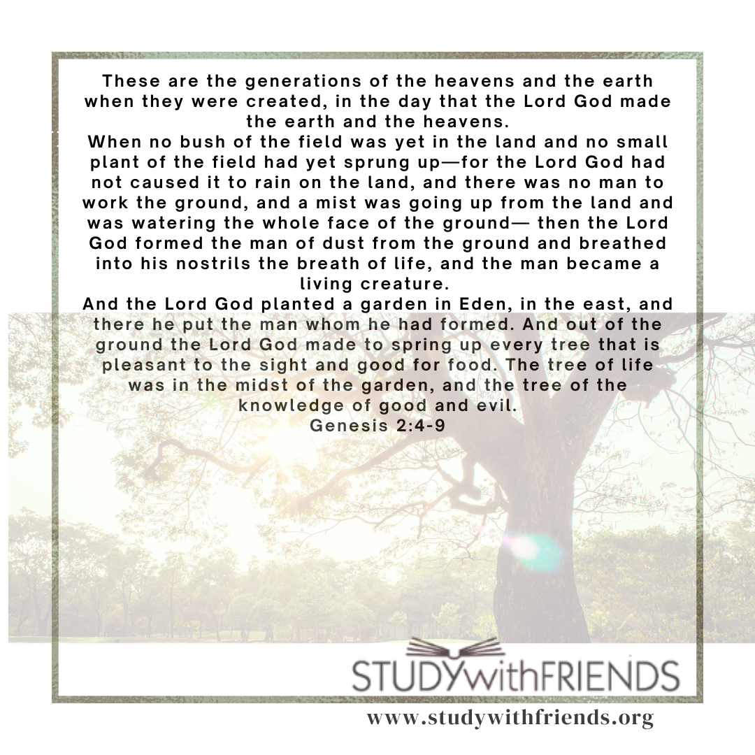Now the LORD God had planted a garden in the east, in Eden; and there he put the man he had formed. The LORD God made all kinds of trees grow out of the ground—trees that were pleasing to the eye and good for food. In the middle of the garden were the tree of life and the tree of the knowledge of good and evil (Genesis 2:4-9, NIV).